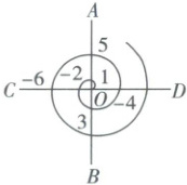 10. 如图所示,直线 $AB$,$CD$ 相交于点 $O$,“阿基米德曲线”从点 $O$ 开始生成,如果将该曲线与每条射线的交点依次标记为 $1$,$-2$,$3$,$-4$,$5$,$-6$,…,那么标记为“$2025$”的点在(