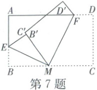 7.B 【解析$】\angle EMF=\angle EMB'+\angle C'MF=\frac{1}{2}\angle BMB'+\frac{1}{2}\angle C'MC=\frac{1}{2}\angle BMC=\frac{1}{2}×180^{\circ}=90^{\circ}.$