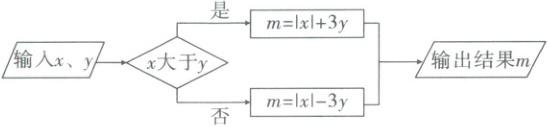 10.C【解析】输入x=-4,若x>y,即y<-4时,m=|-4|+3y=4+3y,又因为m=y,则4+3y=y,解得y=-2>-4,不合题意;若x≤y,即y≥-4时,m=|-4|-3y=4-3y,又因为m=y,则4-3y=y,解得y=1>-4,所以y的值为1.故选C.
