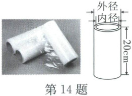 14. 一个圆筒状包装的保鲜膜,如图所示,其规格为“$20cm×60m$”,经测量这筒保鲜膜的内径、外径的长分别是 $3.2cm$、$4.0cm$,则这种保鲜膜的厚度约为