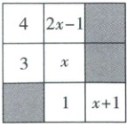 15.5【解析】由题意可知,4+x+(x+1)=(2x-1)+x+1,解得x=5.