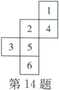 14. 如图是正方体的展开图, 则原正方体相对两个面上的数字之和的最小值是