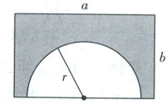 21. (9 分)如图,长方形的长为$a$,宽为$b$,半圆半径为$r$.