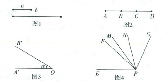 ②如图 4,已知$∠EPG$和$∠FPG$互补,射线$PM$平分$∠EPG$,射线$PN$平分$∠FPG$. 若$∠EPF=\beta$,求$∠MPN$的度数.
