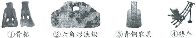 (1)将材料一中农业生产工具按发明的先后顺序排序:__________。(写序号)(1分)
