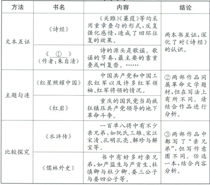 18. 文本互证、主题勾连、比较探究是多部名著对比阅读的有效方法。请按照要求将下面的资料卡片补充完整。(5分)