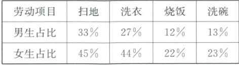 (1)班学生家务劳动中,男生和女生更倾向于参加扫地和洗衣。