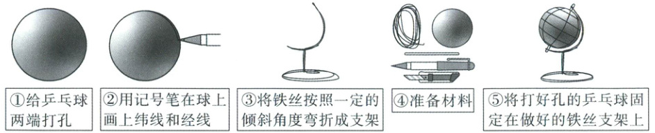 (选自《黑白卷》)陕西某中学开展以“手中‘小地球’,心中‘大世界’”为主题的巧手妙制地球仪制作活动。读制作地球仪的具体步骤图,完成1~3题。