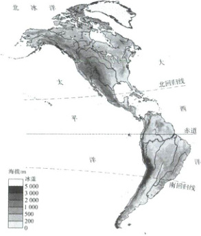 2.A【解析】本题考查南、北美洲的地形地势特征。北美洲西部是高大的落基山脉,南美洲西部是高大的安第斯山脉,因此南、北美洲西部均为高大的山脉;北美洲地形以平原、山地为主,地形分为三大南北纵列带,地势东西高、中部低;南美洲地形以高原、山地、平原为主,地势西高东低,东部平原、高原相间分布。