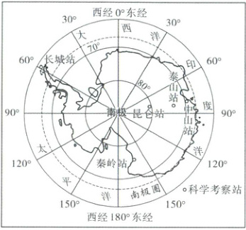 (河南真题改编)2024年是我国极地科学考察40周年,长城站则是我国第一个南极科学考察站。从第一面五星红旗在南极洲上空飘扬,再到罗斯海区域建立秦岭站,这些举措有助于我们更好地认识南极、理解南极。读我国南极科考站位置示意图,完成8~10题。