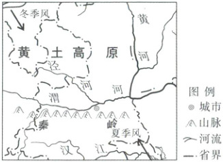新考法 跨历史学科 “秦岭,天下之大阻”,这是历史上对秦岭的记载。秦岭横亘于我国中部,与淮河共同构成了我国重要的自然地理分界线,山中生物资源种类丰富,被称为“生物基因库”。读秦岭位置示意图,完成 1~3 题。