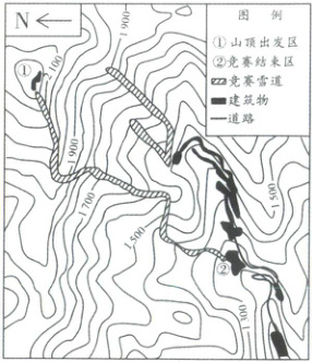 2025年2月3日是北京冬奥会举办3周年。三年来,我国冰雪运动和冰雪旅游开展得如火如荼,已从“小众项目”成为居民的“热门项目”。读北京延庆西北部小海坨山国家高山滑雪中心等高线地形图,完成6~7小题。