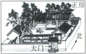 北京四合院是华北地区的传统民居,其基本特点是按南北轴线对称布置房屋和院落,多坐北朝南,大门一般开在东南角,外围砌砖墙,整个院落被房屋与墙垣包围,墙壁和屋顶都比较厚实。正房的前方多植夏季树叶茂盛、秋冬树叶凋零的落叶阔叶树种。读四合院景观图,完成 4~5 题。