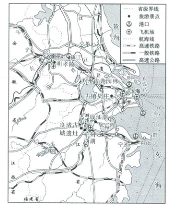 【解析】本题考查长江三角洲地区的地理概况、旅游景点、“同城效应”主要依靠的交通运输方式、“同城效应”对当地的有利影响以及长江三角洲地区绿色生态发展建议。