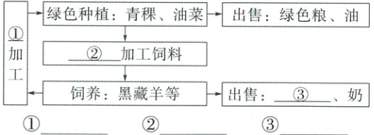 (3)根据材料“用青稞秸秆当饲草,再把羊粪作为有机肥还田”可知,①处为有机肥,②处为秸秆,③处为羊肉。
