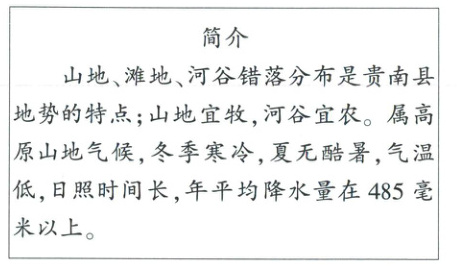 10. 新考法 主题探究 青稞,作为青藏高原的瑰宝,不仅能保障当地的粮食安全,更在全国绿色有机农业领域占据一席之地。青海省的贵南县是全国规模最大的绿色有机青稞种植基地。读贵南县位置示意图及贵南县简介,完成下列探究。