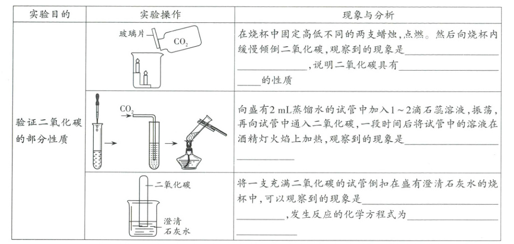 3. 同学们在化学实验课上完成了二氧化碳气体的实验室制取与性质实验,请你与他们一起完成实验报告。
