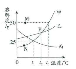 、过滤、洗涤(热水)、干燥。6. $t_{3}\ ^{\circ}C$时,等量的甲、乙、丙三种物质的饱和溶液中,
