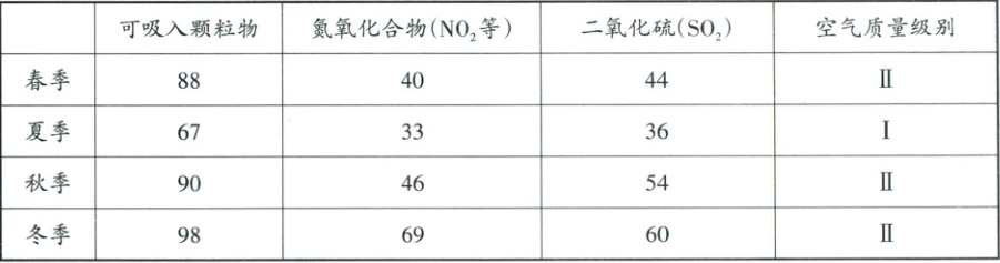。(3)加强对空气质量的监测是保护环境的一项重要措施,下表是某城市一年四季空气质量监测的平均数据。请你据报表回答下列问题。