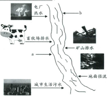 【搜集资料】①水体污染的来源很多,经调查梳理后的情况如图所示,分析对比可知,a处或b处水体污染的来源是