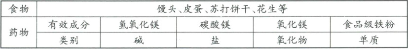 8. 化学活动小组对治疗胃酸分泌过多的食物和药物进行了分类整理。