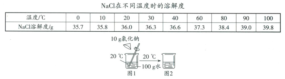B.图2中溶液为20 ℃氯化钠的不饱和溶液