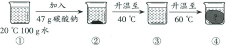 g碳酸钠;升温至60 ℃时,烧杯④中会出现的现象是有晶体析出