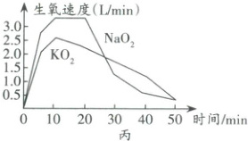 。$500\ g$超氧化钾(${KO_{2}}$)和$500\ g$超氧化钠(${NaO_{2}}$)的生氧性能如图丙所示。小金依据人正常呼吸时需要生氧药品的生氧速度不低于$1\ L/min$,并结合自救呼吸器的结构和生氧药品的生氧性能,选取了${KO_{2}}$作为生氧药品。选取${KO_{2}}$的优点是