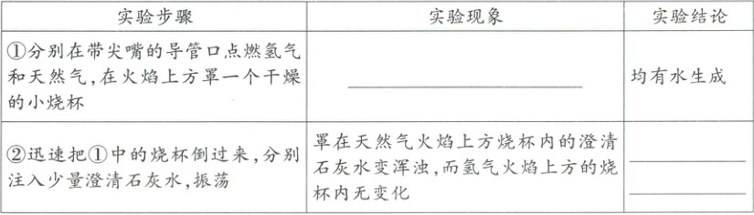 任务二:①烧杯内壁均有水雾产生 ②天然气燃