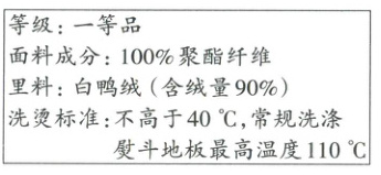 10. 化学是研究物质和创造物质的一门学科,人们通过化学方法合成了各种各样的新材料,合成纤维就是其中的一种,广泛用于服装行业,如图是某品牌羽绒服的标签。请根据标签提供的信息回答下列问题: