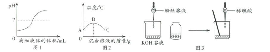 乙同学在实验过程中测得反应混合溶液的温度变化如图2所示,说明稀硫酸与氢氧化钾溶液发生的反应是