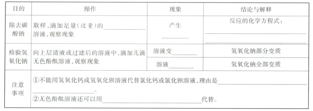 基本思路:检验样品中是否有氢氧化钠。因CO₂+2NaOH=Na₂CO₃+H₂O,变质后生成的碳酸钠溶液呈____性,对氢氧化钠的检验有干扰,因此检验是否含有氢氧化钠需____。