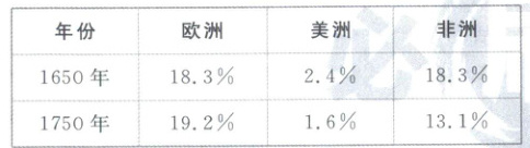 3. [山东临沂2025高一期中]下表所示为1650年和1750年欧洲、美洲、非洲的人口占世界人口百分比的变化。据此推知( )