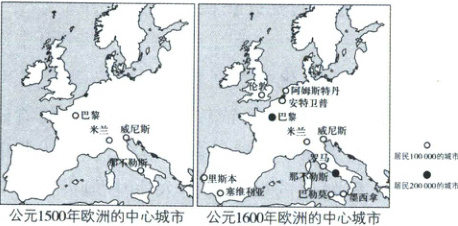 14. [江苏无锡一中2024高一期中]下图是1500—1600年欧洲中心城市历史变迁图,这一变迁(