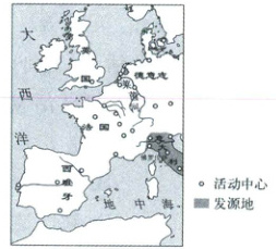 1.D 【解析】本题考查文艺复兴时期的人文主义。选择D:根据地图信息可知,这一运动的发源地在意大利,活动中心分布在欧洲多地,因此可判断这一运动是文艺复兴。结合所学知识可知,文艺复兴的精神内核是人文主义,肯定了人的价值和尊严。排除A:欧洲启蒙运动描绘了资产阶级“理性王国”的蓝图。排除B:民族国家形成的核心标志包括主权独立、统一的民族认同、中央集权体制的确立以及明确领土边界的形成,思想文化领域的文艺复兴并不标志着民族国家的形成。排除C:C项是科学革命的影响,与文艺复兴运动不吻合。