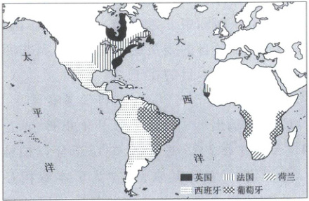 6. [山东 2023·12]下图为某一时期欧洲主要殖民国家在美洲和非洲的殖民地分布示意图。这一时期(