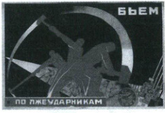 5. [河南名校 2025 高 一阶测]右图为 1931 年苏联宣传画《打击弄虚作假的突击手》。画面中心是三个工人挥动锤子,打向正在睡觉的工人头上的情形。画面右侧是停工的机器和显示九点七分的时钟,位于工人身后的白色三角形上是一幅素描画,左侧是因为耽误工期而发怒的管理者,中部是拿着酒杯的人,右侧是酣睡的人。这说明当时苏联(