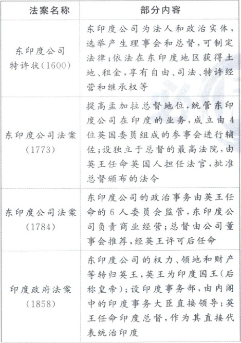 (1)标准一,据1600年至1784年法案可知当时东印度公司占主导;据1858年至1919年法案可知当时英国政府占主导;1947年印度独立,印度政府占主导,体现出主导印度的政治实体的变化。标准二,据材料并结合所学可知1600年至1919年印度是英国的殖民地;1947年印度虽然成为独立国家,但在名义上仍是英联邦成员,体现出印度主权归属的变化。