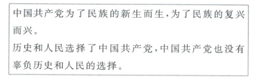 )①中国共产党坚守人民立场,践行初心、担当使命 ②中国共产党是中国工人阶级的先锋队 ③共产党坚持全心全意为人民服务的宗旨 ④党员干部要坚定历史自信,增强历史主动