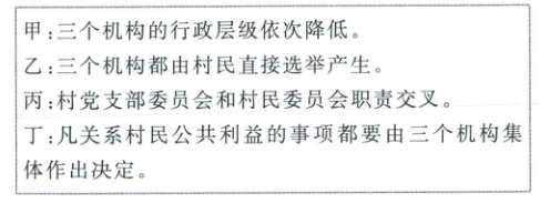 ③丙的观点合理。我国推行村党组织书记、村民委员会主任“一肩挑”,故两个机构职责交叉