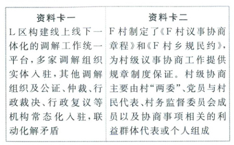 12. [江苏扬州一中2025高一期末]针对当前基层治理现状,某中学生调研小组收集的两组资料如下: