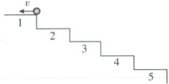 5. AC 【解析】由题意知,小球斜上抛能水平且贴着台阶运动到第1级台阶,则第1级台阶右边缘为小球斜上抛运动的最高点,小球竖直方向末速度为零,如图所示,采用逆向思维,认为小球沿虚线做平抛运动最终落在第4级台阶上,当小球落在第4级台阶的右边缘时,根据平抛运动的规律得$\frac{1}{2}gt^2 = 3l$,$v_1t_1 = 6l$,解得$v_1 = \sqrt{6gl}$,当小球恰好过第3级台阶的右边缘时,有$\frac{1}{2}gt^2 = 2l$,$v_2t_1 = 4l$,解得$v_2 = \sqrt{4gl}$,故$v$的取值范围为$\sqrt{4gl} \leq v \leq \sqrt{6gl}$,故选A、C。 方法总结:斜抛到最高点的运动可以逆向看作从最高点开始的平抛运动。