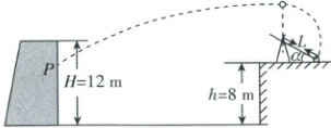 (2)若城墙上端的水平宽度 $d = 2.4$ m,则石块抛出时速度多大才可以击中敌人城墙顶部?