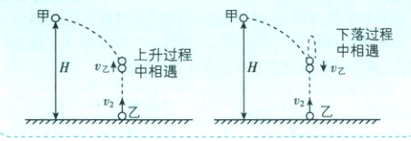 【解析】由题意可知,若两物体在空中能够相遇,在竖直方向应当满足$\frac{1}{2}gt^{2}+(v_{2}t-\frac{1}{2}gt^{2})=H$,代入数据解得$t=\frac{H}{v_{2}}$,A正确;