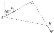 9.BCD [解析]作出小球运动轨迹如图所示,在B点,根据题意有$\tan 30^{\circ}=\frac{v_{Bx}}{v_{By}}$,又$v_{Bx}=v_{0}\cos 30^{\circ}$,解得$v_{By}=\frac{3}{2}v_{0}$,小球从A点到B点,有$v_{0}\cos 60^{\circ}-gt=-v_{By}$,解得$t = \frac{2v_{0}}{g}$,又A、B两点的距离为$1.8m$,则有$x^{2}+y^{2}=(1.8m)^{2}$,其中$x = v_{0}\cos 30^{\circ}· t$,$y=\frac{v_{By}^{2}-(v_{0}\cos 60^{\circ})^{2}}{2g}$,联立解得$t = 0.6s$,$v_{0}=3 m/s$,故A错误,B正确;$v_{Bx}=v_{0}\cos 30^{\circ}=\frac{3\sqrt{3}}{2} m/s$,$v_{By}=\frac{3}{2}v_{0}=\frac{9}{2} m/s$,则$v_{B}=\sqrt{v_{Bx}^{2}+v_{By}^{2}}=3\sqrt{3} m/s$,C正确;小球从A点运动到B点,速度变化量大小$\Delta v = gt = 6 m/s$,D正确.