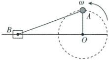 [解析]当连杆AO与OB垂直时,由几何关系可知$\angle ABO = 30^{\circ}$,将滑块的速度$v_B$、小球速度$v_A$均沿杆AB方向和垂直于杆AB方向分解,有$v_B\cos30^{\circ}=v_A\cos30^{\circ}$,因为$v_A = \omega L$,联立解得$v_B = \omega L$,故选C。