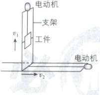 2. [湖南张家界 2024 高一下期末](多选)某生产线上机器人的部分构造如图所示,高为 $ h = 5 \, m $ 的支架竖直放置在长为 $ l = 7.5 \, m $ 的水平轨道上,支架顶端的电动机可以拉动工件以 $ v_1 = 2 \, m/s $ 的速度匀速上升,同时水平轨道右端的电动机可以拉动支架以 $ v_2 = 3 \, m/s $ 的速度匀速向右运动. 在正常工作过程中,下列说法正确的是(