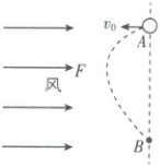 3. [重庆渝东九校联盟 2025 高一下联考](多选)如图所示,在风洞实验室中,从 A 点以水平速度 $ v_0 = 4 \, m/s $ 向左抛出一质量 $ m = 2 \, kg $ 的小球(可视为质点),抛出后的小球受水平向右的风力作用,大小恒为 $ 4 \, N $,经过一段时间小球运动到 A 点正下方的 B 点处,重力加速度 g 取 $ 10 \, m/s^2 $,在此过程中(