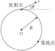 10. [北京朝阳区2025高一下期末]军事上发射导弹时,由于导弹会飞行很远,故研究其射程时要将地面视作球面。可以将导弹的运动近似看成是绕地球中心的匀速圆周运动与垂直地球表面的上抛运动的合成。如图所示,假设导弹从地面发射时的速度大小为$v$,倾角为$\theta$,地球半径为$R$,地球表面重力加速度为$g$,且飞行过程中地球对导弹引力的大小近似保持不变。关于导弹射程$s$(导弹发射点到落地点沿地表方向的距离),请根据运动的合成与分解方法,判断以下选项合理的是(