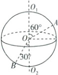 11.B [解析]过$A$、$B$分别向$O$、$O_2$作垂线,与$O$、$O_2$的交点即为$A$、$B$做圆周运动的圆心,向心加速度指向圆心而非球心,D错误;$A$、$B$两点均绕$O$、$O_2$转动,具有相同的角速度,由几何知识知,$A$的转动半径大,由$v = \omega r$知,$A$的线速度大,由$a = \omega^2 r$知,$A$的向心加速度大,A、C错误,B正确。
